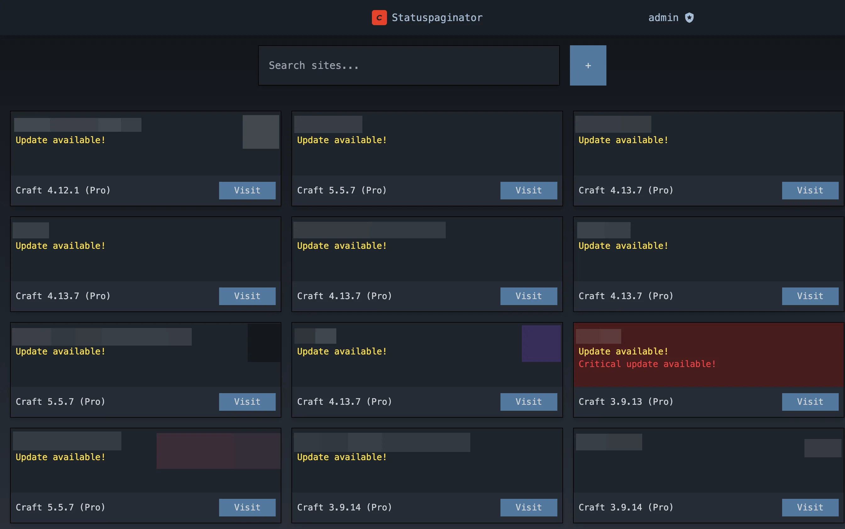 Statuspaginator was a project I started building in late 2023 and having received mostly neglect since then, its main purpose being giving us a clear overview of the different Craft CMS sites we were running and which versions they were on. This would be especially useful in the rare case a security vulnerability was found in Craft, and was the main reasoning behind the projectās development.